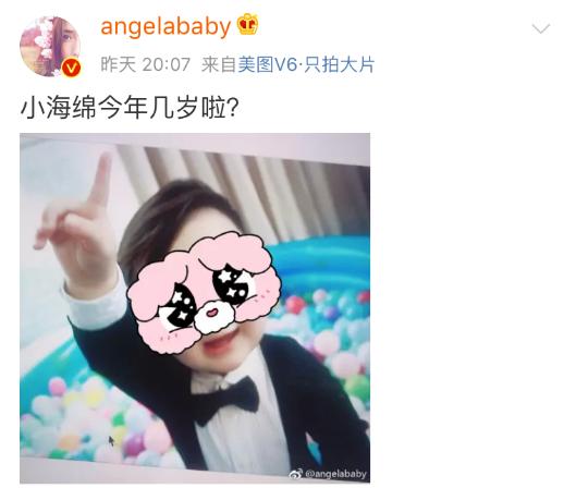 到今天刚刚好是一年整!就在昨天,杨颖还发小海绵的正面照,说“小海绵今年几岁啦?”,看图片中的小海绵皮肤白白的,脸蛋圆圆的!手指还