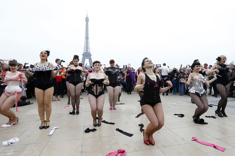 法国女性集体抛胸罩 呼吁关注乳腺癌