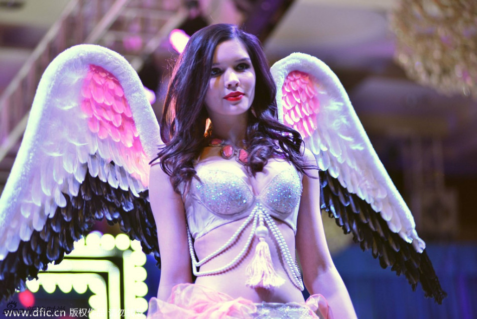 山寨 维密秀 再现 模特扛羽毛翅膀秀内衣
