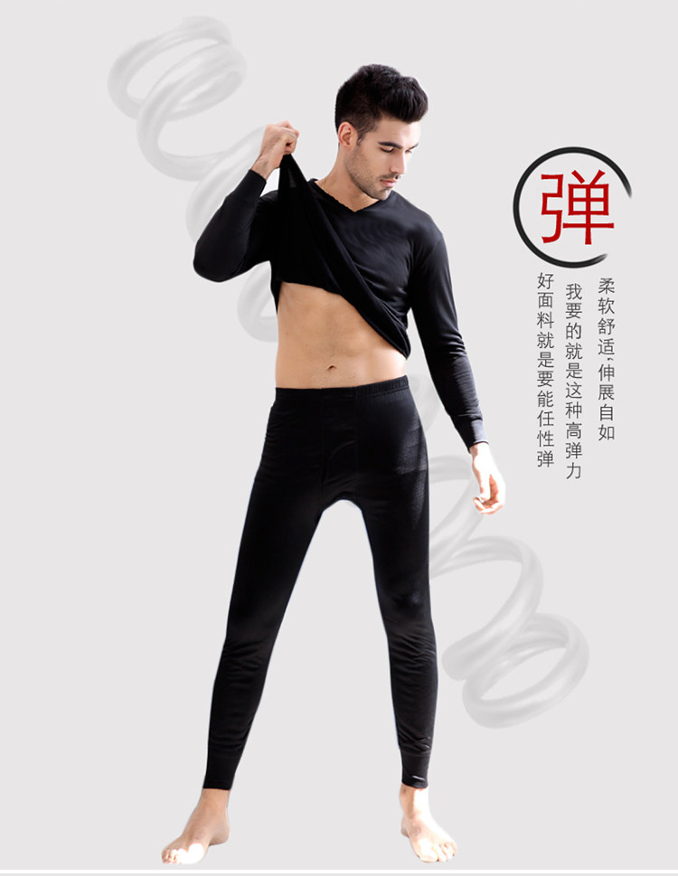 男士保暖内衣打底秋冬防寒内衣V领套装贴身薄款加绒秋衣秋裤套装 -