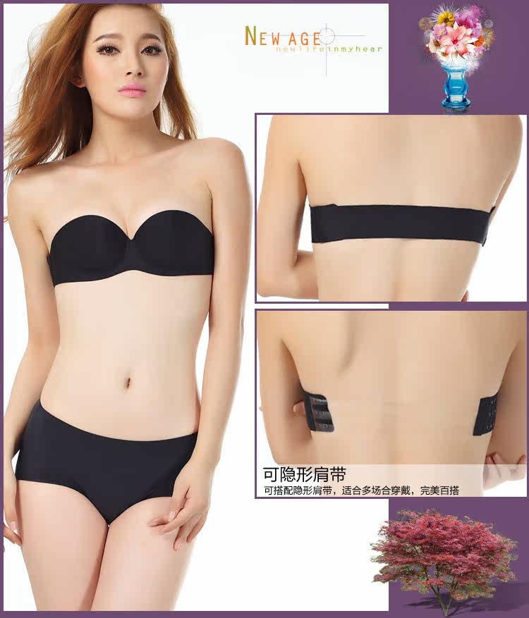 纯色无痕无肩带隐形文胸一片式性感百搭内衣露背文胸