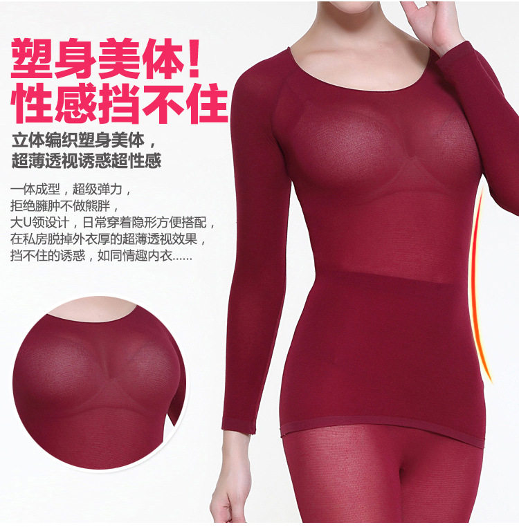 37度恒温正品蝉羽超薄保暖内衣女套装女薄款发热纤维紧身秋衣秋裤 -