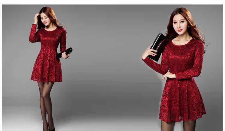 新款时尚蕾丝中长款保暖上衣女内衣加绒加厚可外穿修身打底衫裙