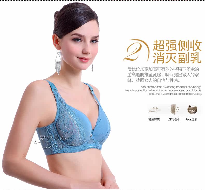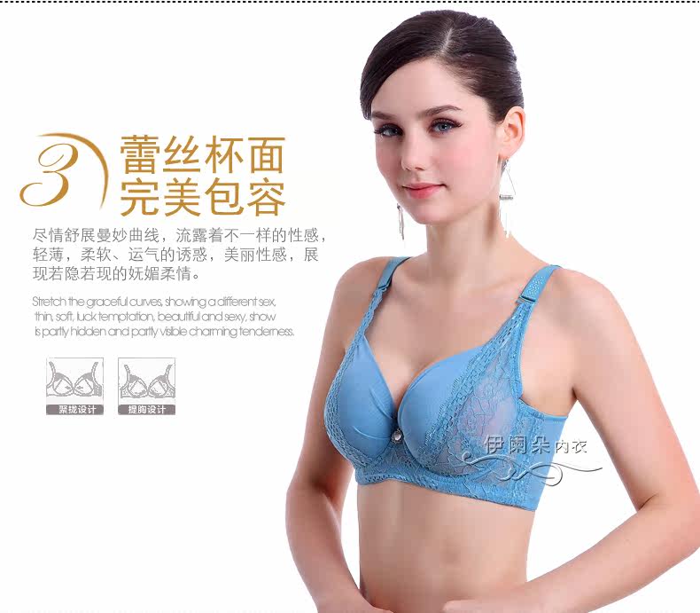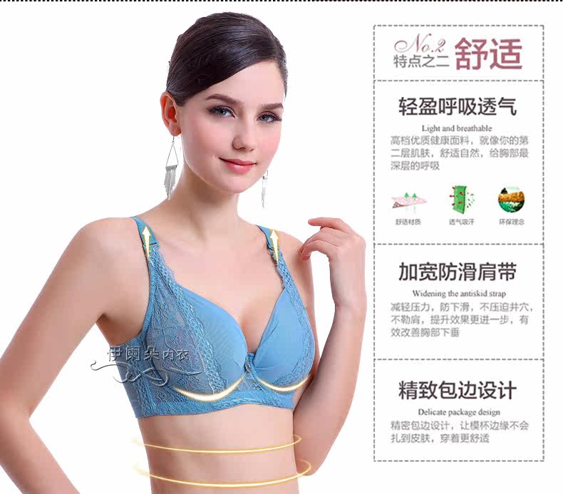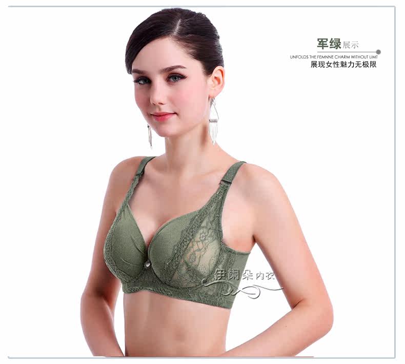 美人旗舰店 夏内衣大码胖MM文胸女薄款聚拢蕾丝调整型加厚小胸V