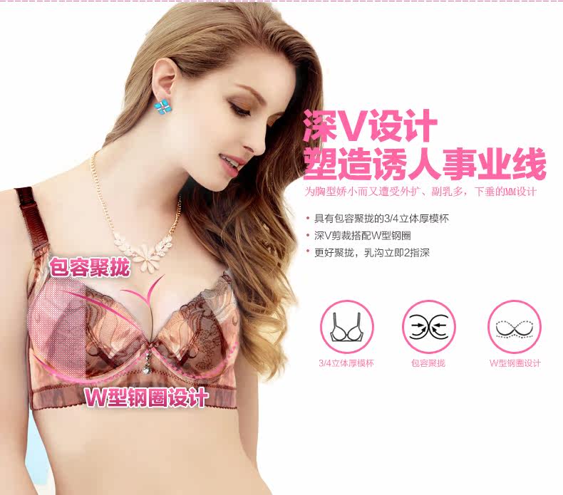 婷美内衣正品小胸深V聚拢文胸调整型性感蕾丝钢圈内衣文胸