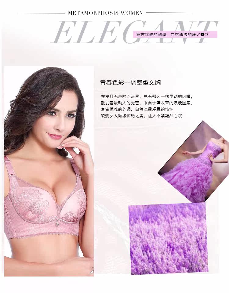 官网 夏季品牌内衣女士文胸中模杯胸罩深v型聚拢 调整小胸性感蕾丝