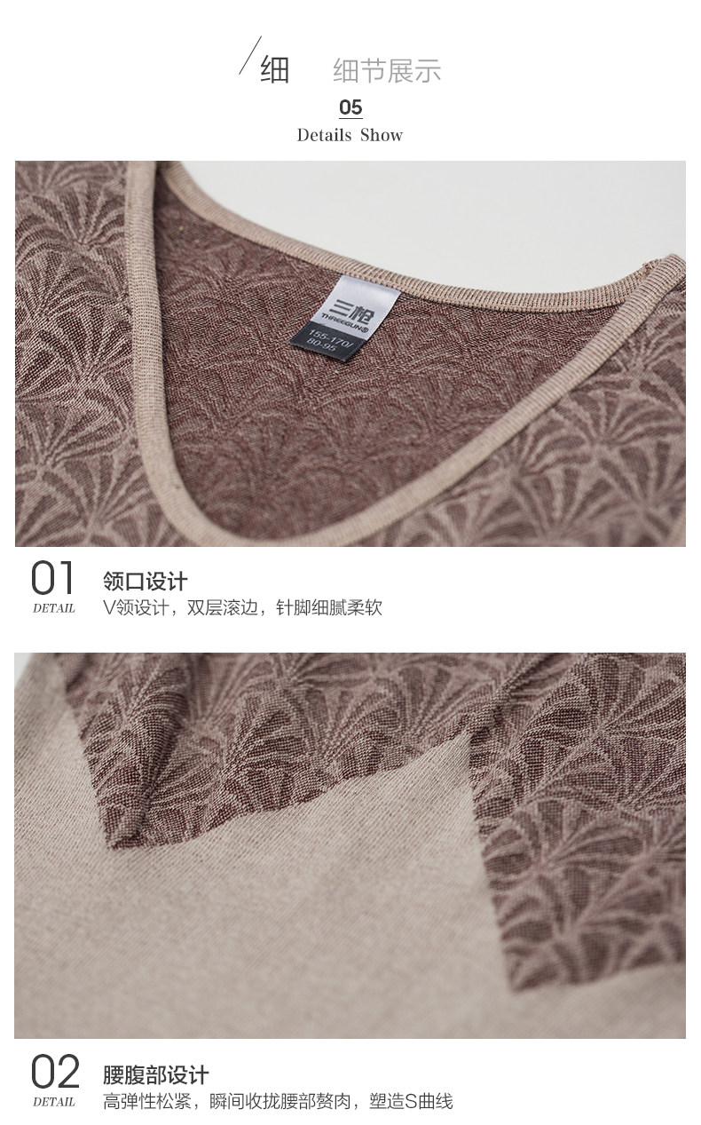 三枪美体内衣 秋冬新品一次成型圆领长袖女保暖内衣套装