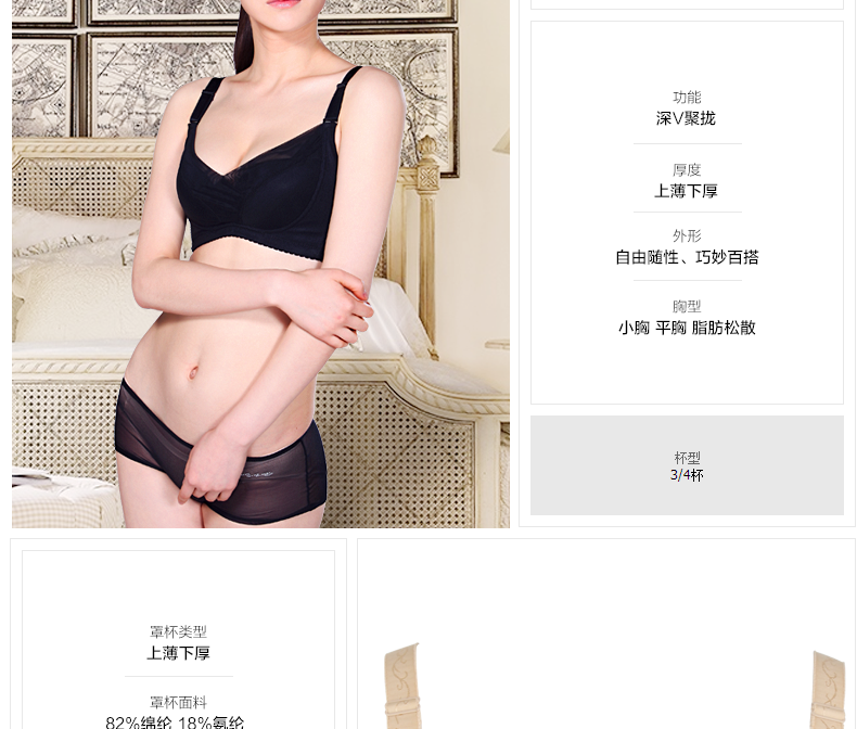 缇惠内衣是几线-体会|丝绣锦3/4厚模杯深V聚拢文胸-文胸价格