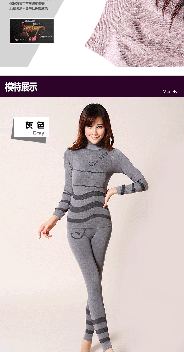 女士无缝美体中高领内衣 保暖内衣睡衣套装-体丝袜