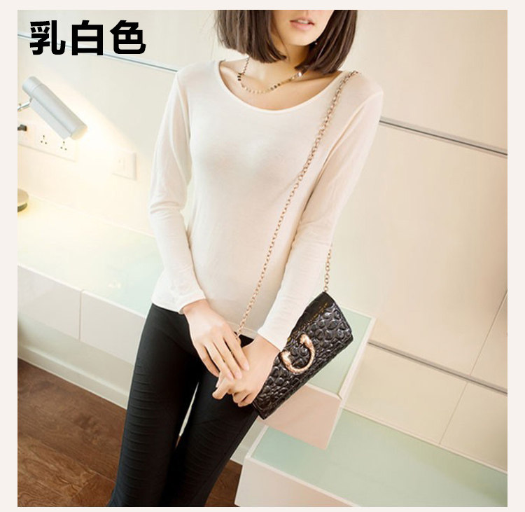 超薄款保暖内衣女上衣 单件秋衣打底内衣长袖 大低领莫代尔打底衫