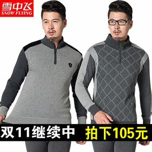 中领低领时尚保暖内衣套装少男士青年中年中老年加厚加绒棉毛衫裤