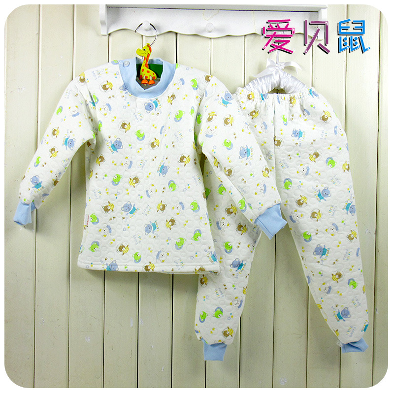 厂家批发 三层保暖厚 纯棉中领内衣中大童 儿童保暖内衣套装 1377-格