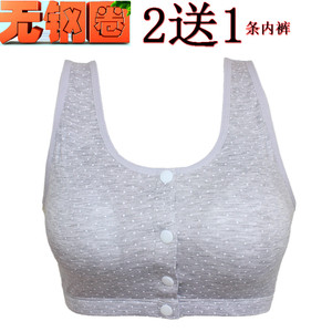 2件免邮纯棉中老年文胸前扣大码夏季无钢圈少女学生背心式胸罩 -钢