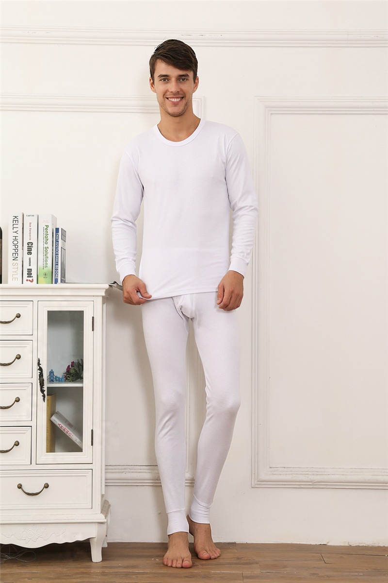 直销 纯棉男式保暖内衣套装男士圆领衫中老年打底衫内衣内裤 -保暖
