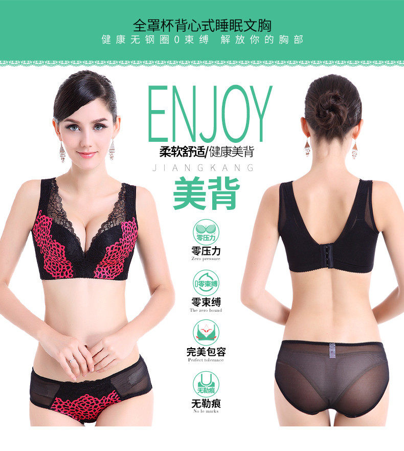 紫纤丝刺绣美背厚小胸无钢圈聚拢文胸 调整型收副乳女士品牌内衣
