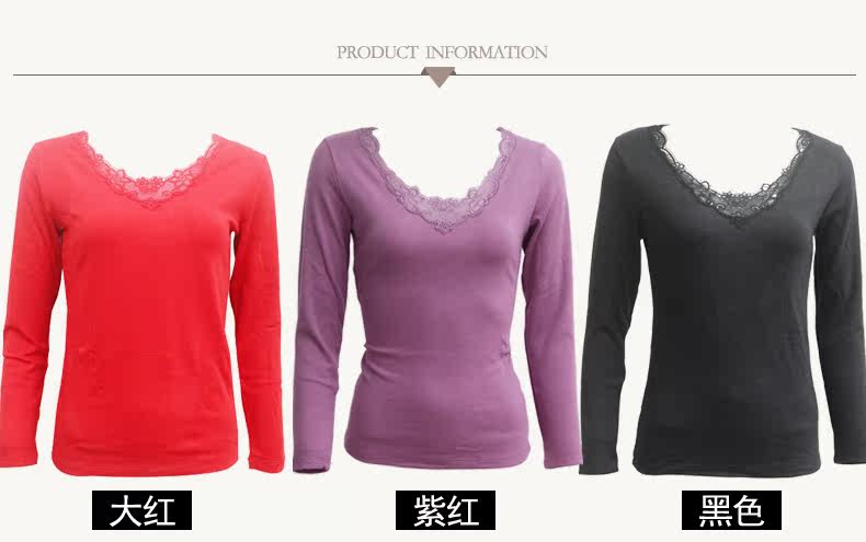 冬季女士加厚自发热纤维蕾丝V领保暖内衣套装 女式塑身款秋衣秋裤