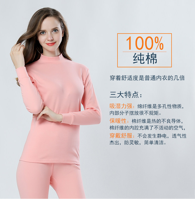 男士内衣中老年女士秋衣秋裤棉毛衫高圆领纯棉打底保暖内衣套装冬