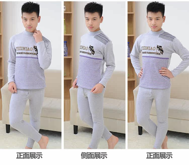 青少年保暖内衣加厚加绒中学生内衣男孩中高领内衣套装纯棉中大童