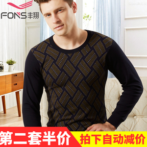 2件包邮男士全棉保暖内衣秋衣 中老年纯棉印花保暖内衣单件上衣