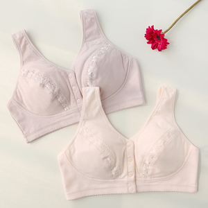 无钢圈中老年妈妈文胸 纯棉薄款背心式前扣大码内衣老人全棉胸罩 -钢