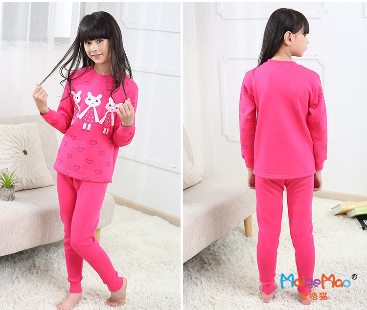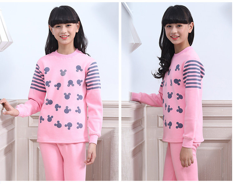 高领加绒保暖内衣纯棉套装中大童儿童青少年女童中学生加绒加厚女