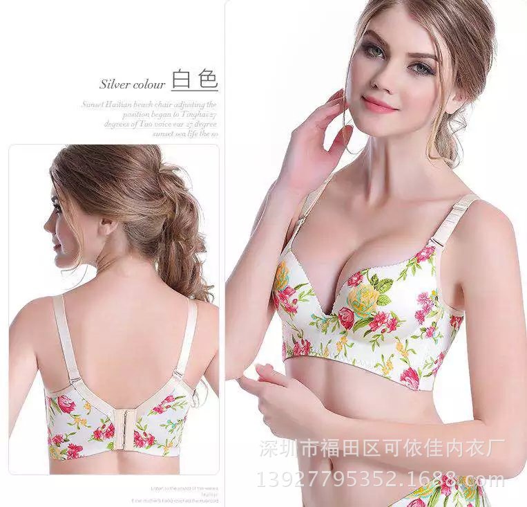 聚拢文胸 网络小碎花一片式钢圈舒适侧收副乳女土文胸 阿里巴巴