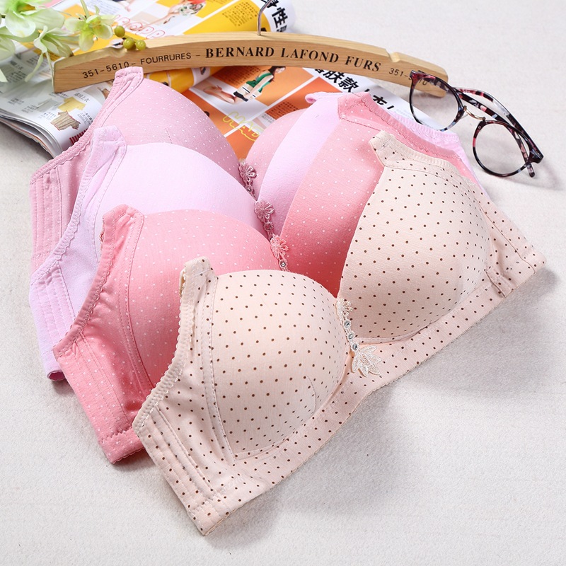 无钢圈文胸纯棉柔珠按摩型内衣女中模杯固定双肩带胸罩批发-植物内