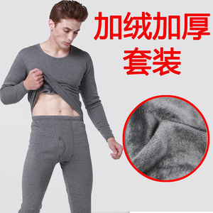 品牌内衣冬款 男士中领拉链单面绒雕印加厚保暖内衣套装 -价格,