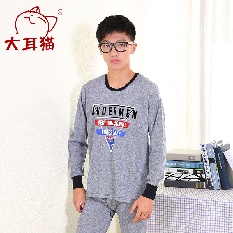 青少年男中大童保暖内衣套装男孩打底棉毛衫初中学生秋衣秋裤薄款