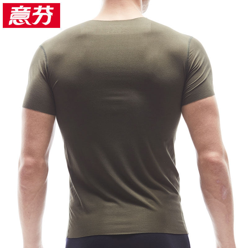 意芬男士内衣莫代尔V领短袖T恤男修身短袖无痕紧身打底衫汗衫夏季