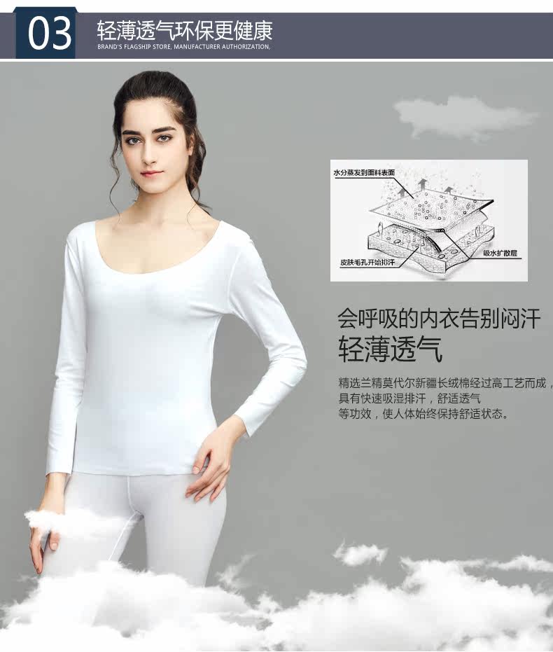 意芬女士莫代尔保暖内衣女薄款春秋 纯色基础打底秋衣秋裤套装