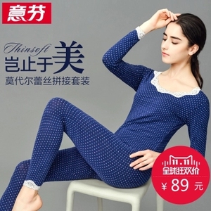 意芬镂空女王高档蕾丝v领女士保暖内衣套装薄款莫代尔秋衣秋裤女