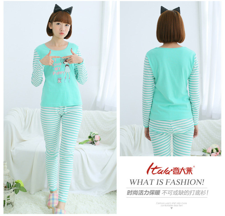 意大莱正品秋冬全纯棉质少女学生保暖打底内衣秋衣秋裤棉毛衫套装