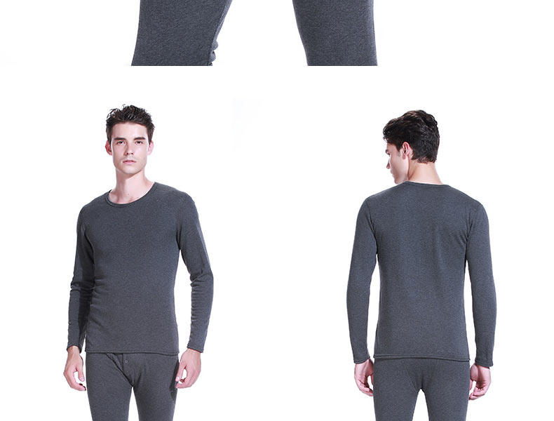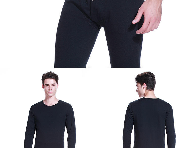 雅尔乐保暖内衣男青年纯棉薄款圆领秋衣秋裤套装大码打底棉毛衫冬