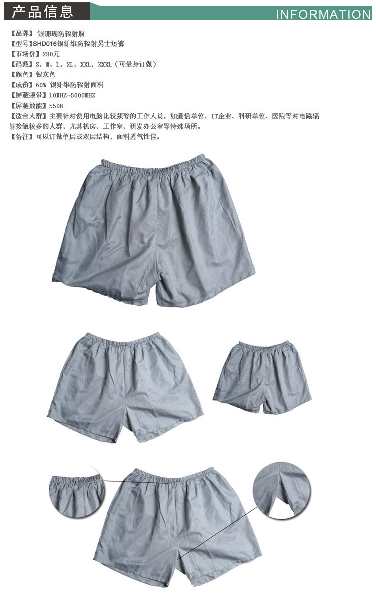 银珊瑚防辐射内裤银纤维防辐射服男装内衣男士防辐射短裤防辐射服