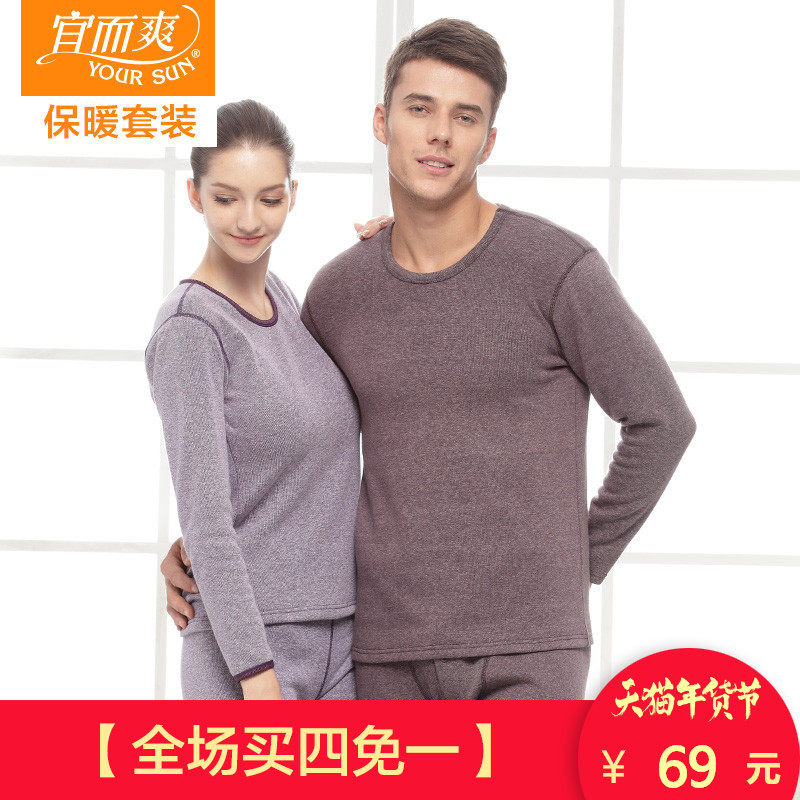 特价 宜而爽保暖内衣女加厚加绒男套装雪花绒冬季秋衣秋裤