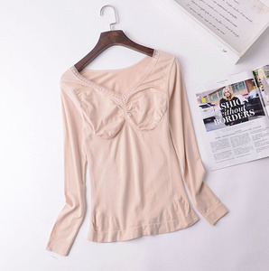 单专柜正品外贸原单美体保暖内衣女塑身 v低领蕾丝秋衣秋裤套装