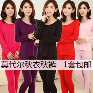 莫代尔内衣套装 女薄款保暖内衣套装 女式大码低领秋衣秋裤 正品购买