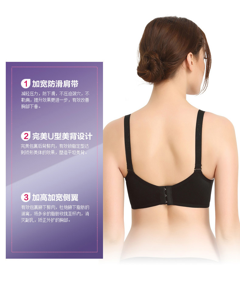 贝女梦光面真丝文胸 无痕内衣 舒适无钢圈文胸 黑色文胸 女士新品 -文