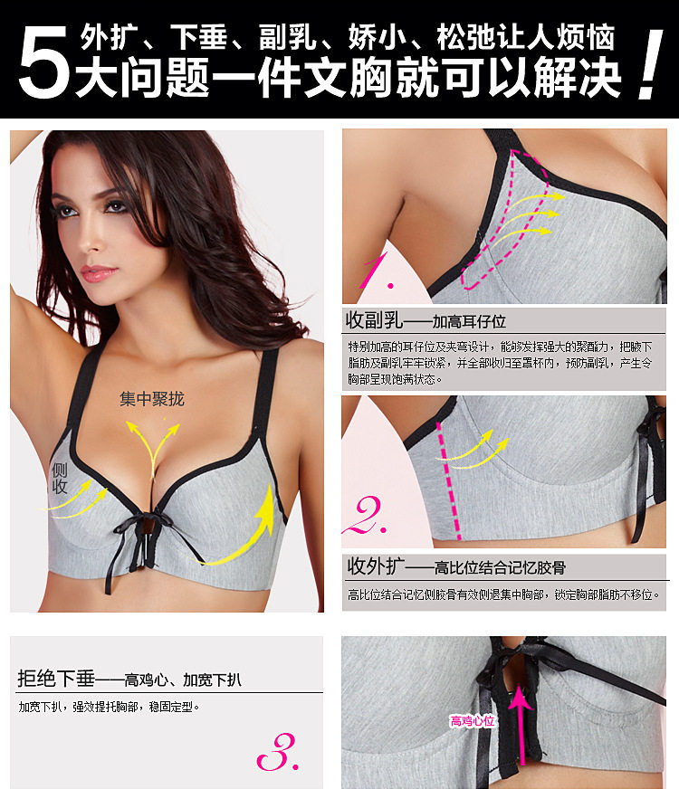 款前扣竹炭纤维运动型内衣文胸包邮按摩调整型聚拢Y型背心式 -竹亲