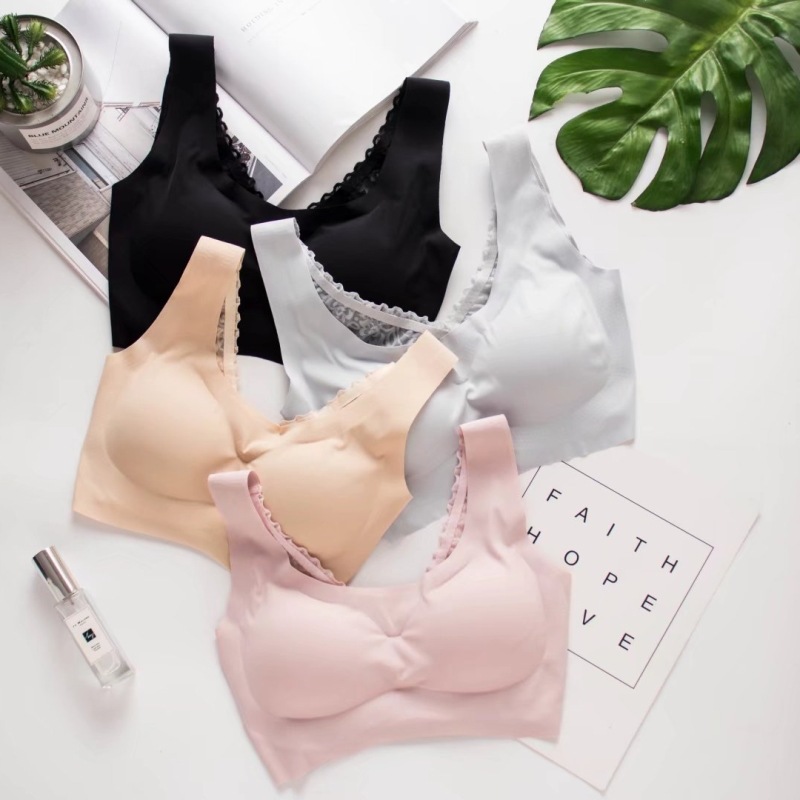 带胸垫睡眠文胸背心式一体零束缚薄款蕾丝无钢圈运动内衣女打底衫-