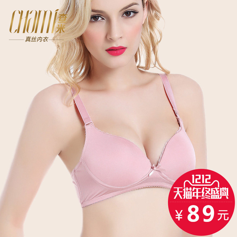 查米真丝文胸女夏季薄款透气无钢圈胸罩小胸聚拢深V性感女士内衣 上