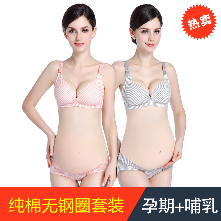 纯棉怀孕期孕妇喂奶内衣内裤套装 薄模杯孕妇产后哺乳内衣套装-哺乳