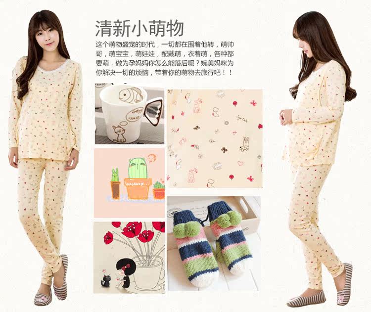 秋衣秋裤 全棉哺乳内衣套装 孕妇喂奶棉毛衫裤秋衣 阿里巴巴