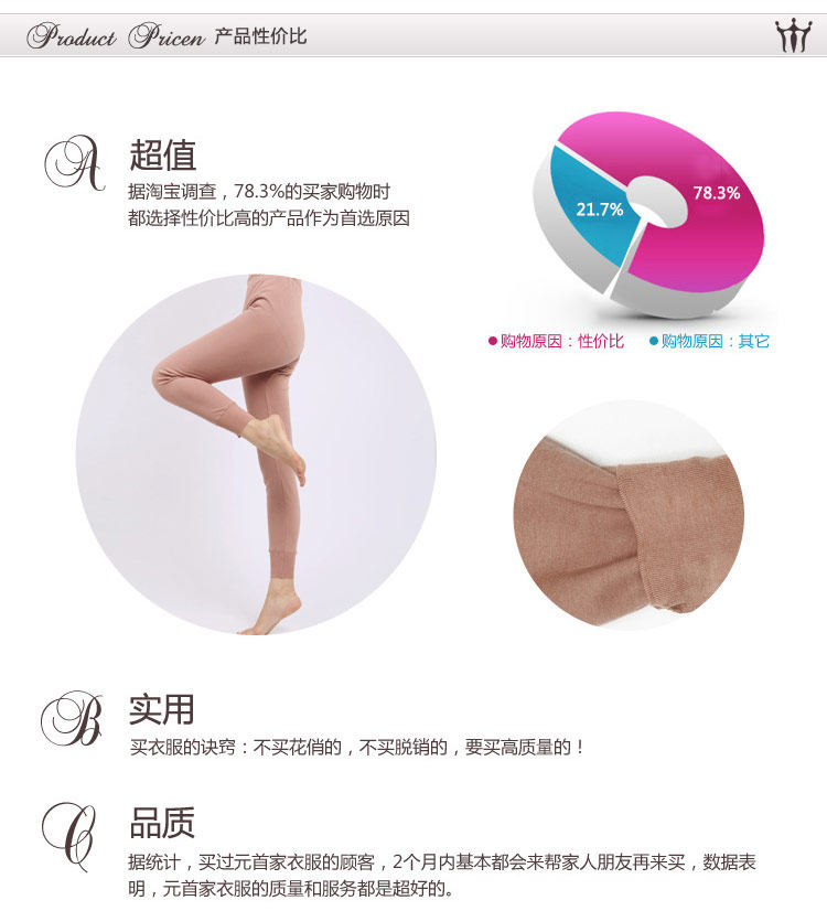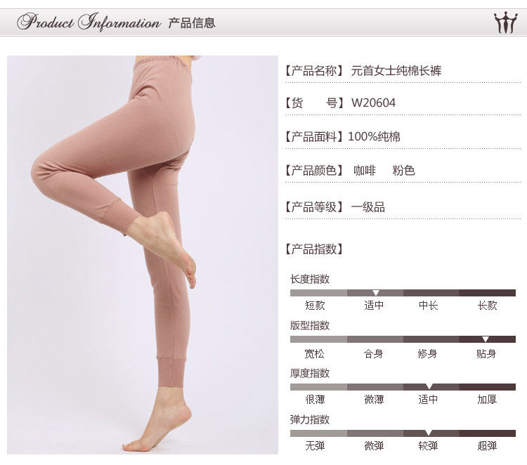 元首内衣女士纯棉单件条宽松大码秋裤全棉单一色棉毛裤衬裤W20604
