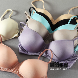 包邮日系无钢圈文胸深v性感简约光面运动前扣聚拢少女内衣薄款-少女