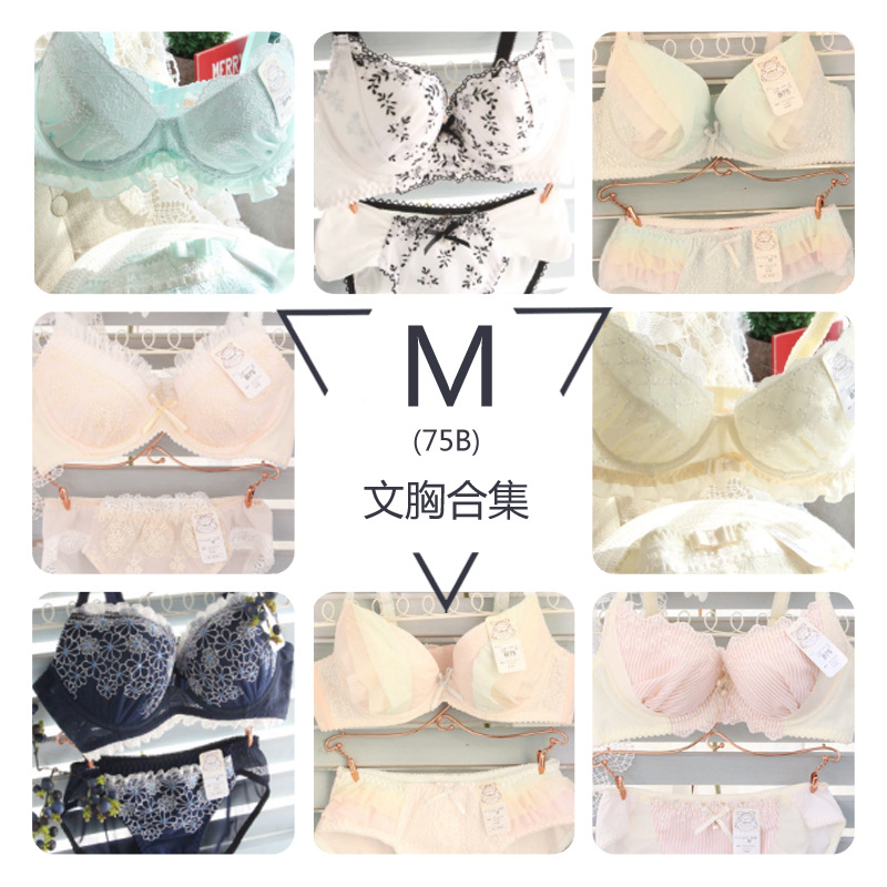 一件代发原单内衣 纯棉杯条纹珍珠雪纺刺绣钢圈文胸M码合集-日韩腮