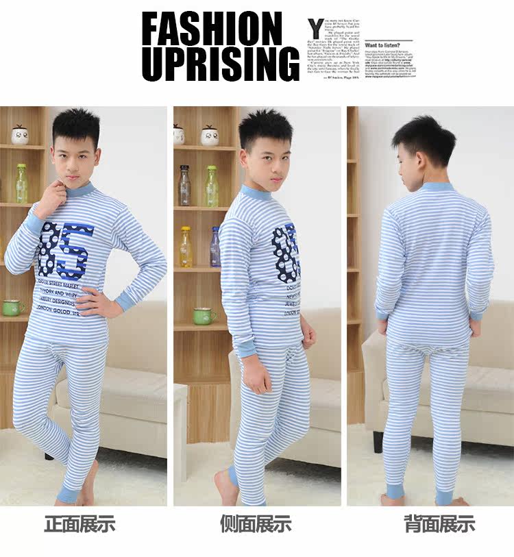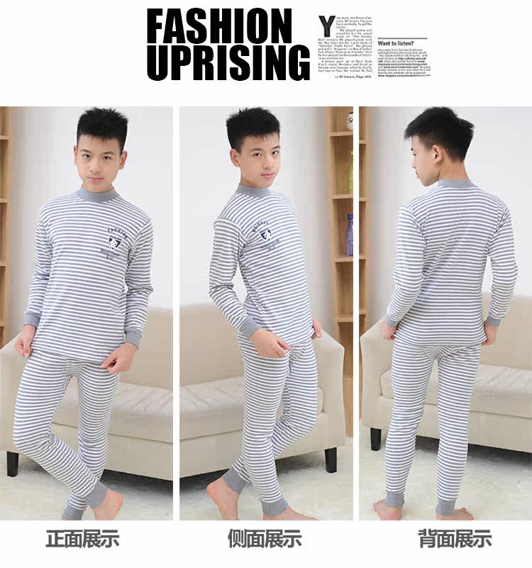 青少年内衣套装男纯棉中学生内衣中高领中领秋衣秋裤中大童棉毛衫