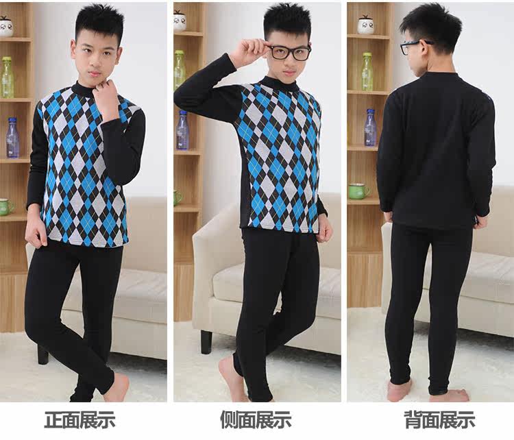 15新款青少年中学生保暖内衣套装大童男童加绒加厚棉内衣套装冬
