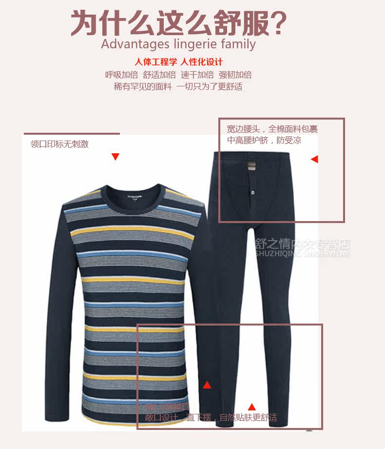 三针内衣男保暖内衣舒绒莱卡秋衣秋裤中加厚圆领全 纯棉保暖套装